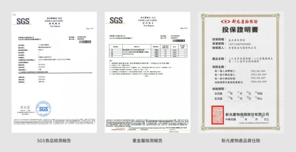 1. 本產品通過SGS食品檢測、投保產品責任險,食用前請先確認原料,如擔心產生食物過敏症狀,請遵循醫生指示或避免食用。