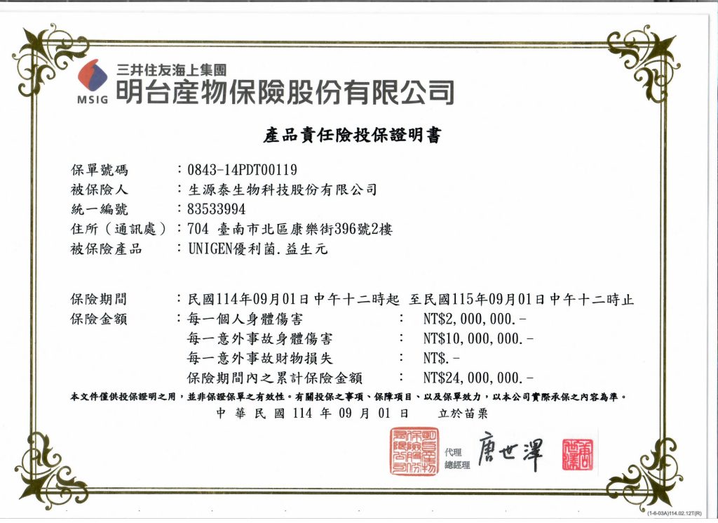 負責廠商:生源泰生物科技股份有限公司