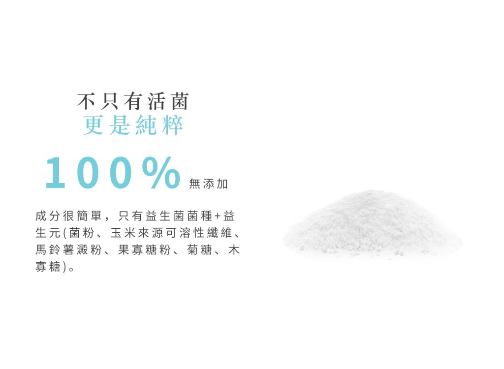 成分:副乾酪蛋白乳酸桿菌菌粉(Lactobacillus paracasei-LPC00)、玉米來源可溶性纖維、馬鈴薯澱粉、果寡糖粉、菊糖、木寡糖