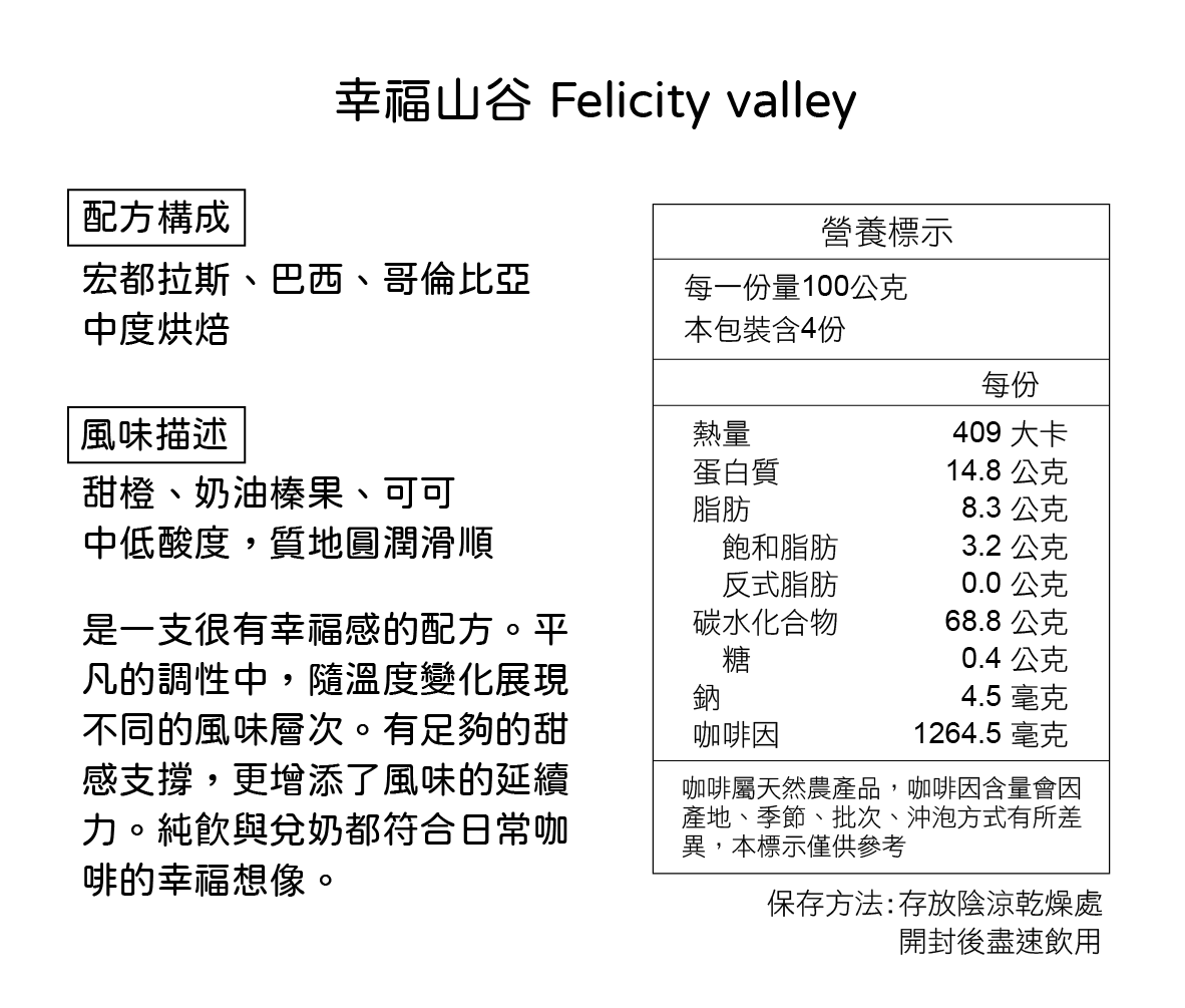- 配方構成:宏都拉斯、巴西、哥倫比亞,中度烘焙